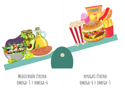 (A mediterrán étrendre ez nem igaz, az ugyanis több omega-3 zsírsavat tartalmaz, mint omega-6-ot. A mediterrán térségben rengeteg halat, olíva olajat, zöldséget és teljes kiőrlésű gabonát fogyasztanak, finomított élelmiszerből pedig csak keveset.)